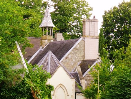 If you look to the right, above the hedge, you will see the roof of a church, now a private house. Human bones have been unearthed here at various times during the conversion of the building – would that make it an exciting or a creepy place to live?!