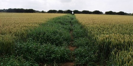 About a hundred metres after you cross the stream you will pass over the same Roman road you crossed in the first field. Can you see any sign of it as a raised strip of ground across your path, or perhaps in the way the crops are growing to either side?