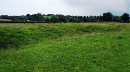 Can you see another wide channel running parallel to the north side of the moat and a smaller one extending south? These suggest that this moat doubled up as a fishpond; the extra channels helping to manage the fish stocks. The northern channel may have been where they bred the fish until large enough to release into the moat.