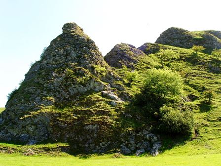 This area of Dovedale sits at the junction between this harder limestone and softer, clay-like shale deposits which formed in the shallower parts of the sea. Over time, as the softer surrounding shale rocks have worn away these jagged limestone hills have been left behind.
