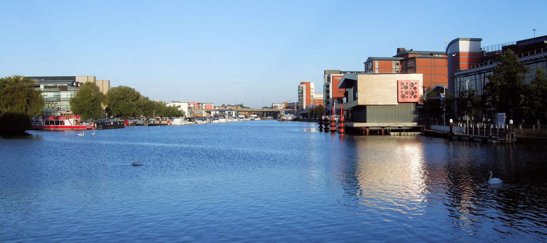 Brayford Pool is a natural lake. It was formed when the River Witham, which flows through the city behind us, was artificially widened. It was here that in the 1st century BC, the first known settlement originated, the waterways providing invaluable transport routes and drinking water.