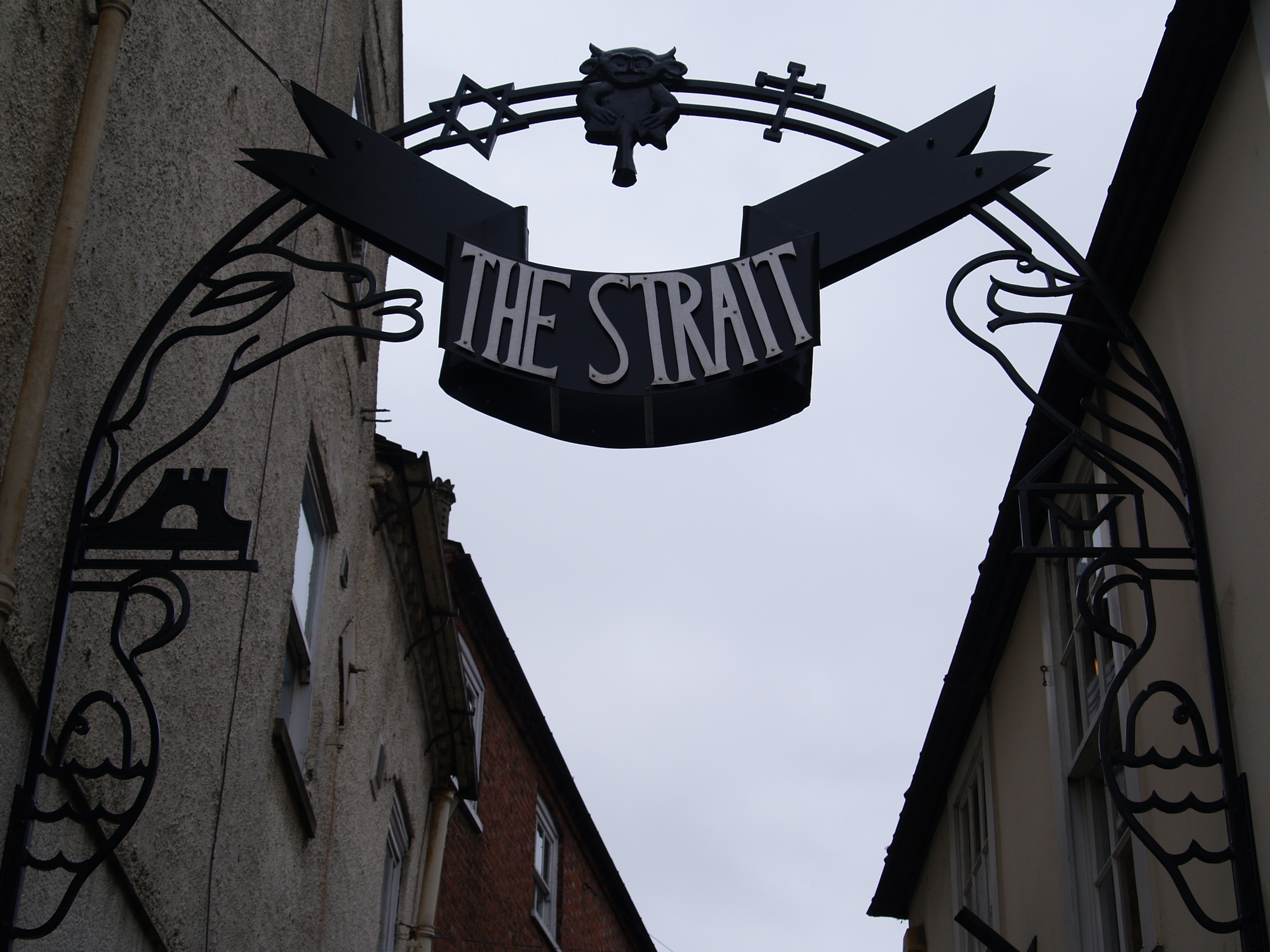 Look above and you will notice an ornate arch welcoming you to The Strait. The placard on the wall provides a great explanation of the imagery within the iron arch above. Look out for Roman symbols depicting the importance of fish markets, a hare and goose alluding to the meat markets that symbolised Lincoln’s growing commercial importance, and the Star of David reflecting its strong Jewish history. All of this point to the fascinating stories of Lincoln’s past.