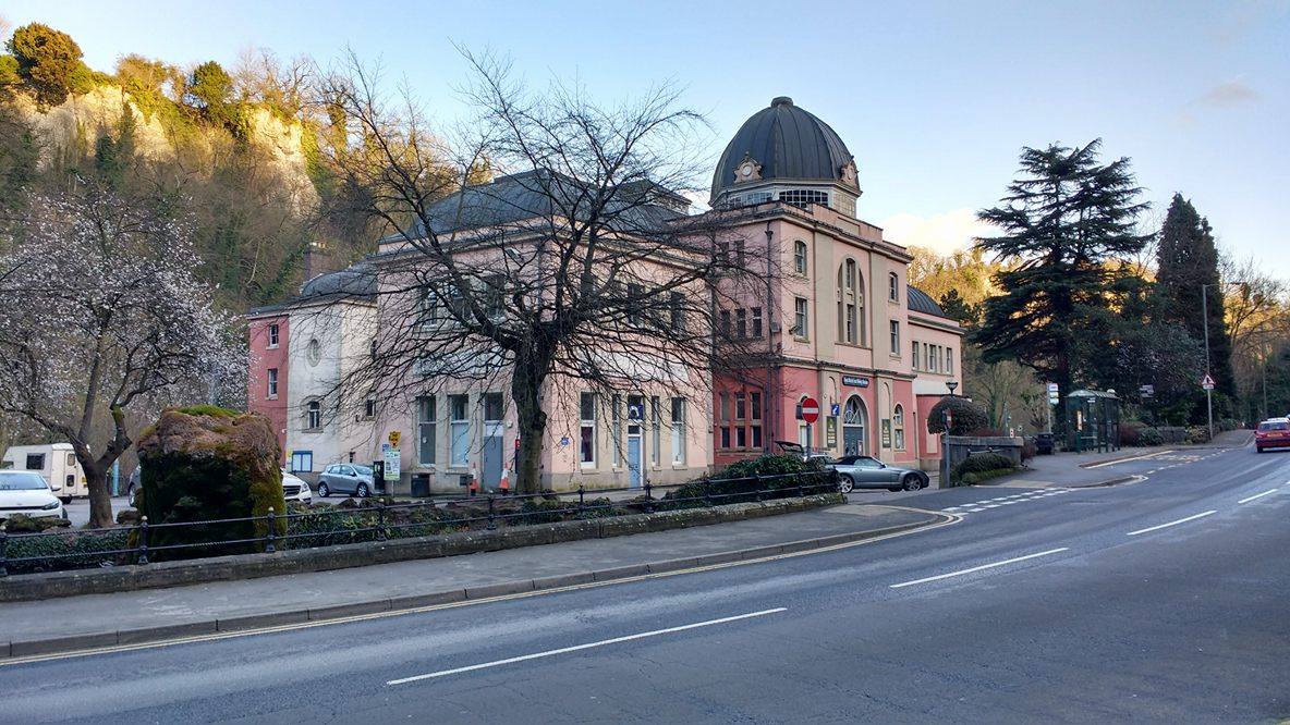 Cross back over the bridge and almost directly in front of you will see the bright blue exterior of the Matlock Bath Aquarium. Cross over the road and stand outside it for our final stop.