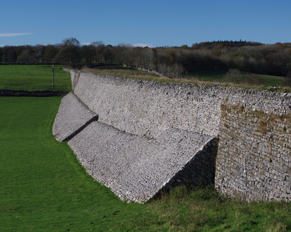The builders must have borrowed from the deceptively simple and centuries-old technology of the drystone wallers. Walls made of local limestone criss-cross the green fields around us in all directions.