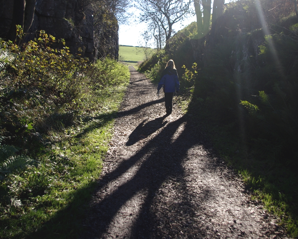 There’s a dramatic change of atmosphere here, as the former railway line slices through a small spur of the hill. At this point we are literally walking through a cross section of the very material of the White Peak: Carboniferous limestone.