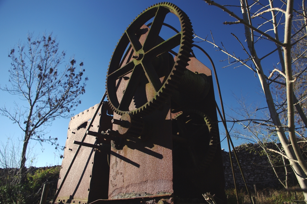 We are now looking up at the remains of a sizeable quarry, complete with a rusting crane which once loaded the limestone blocks onto trains.