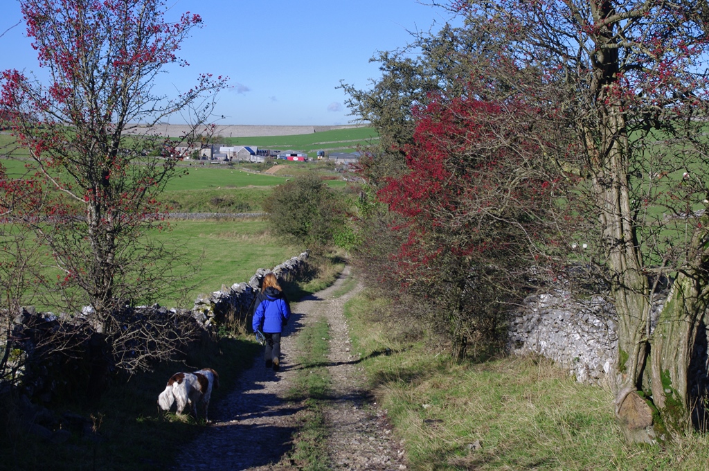 The trackways of prehistory and the Industrial Revolution are both behind us now as we descend toward Minninglow Grange, the farm directly ahead. But this rough track is no less a significant marker in the history of White Peak crossings.