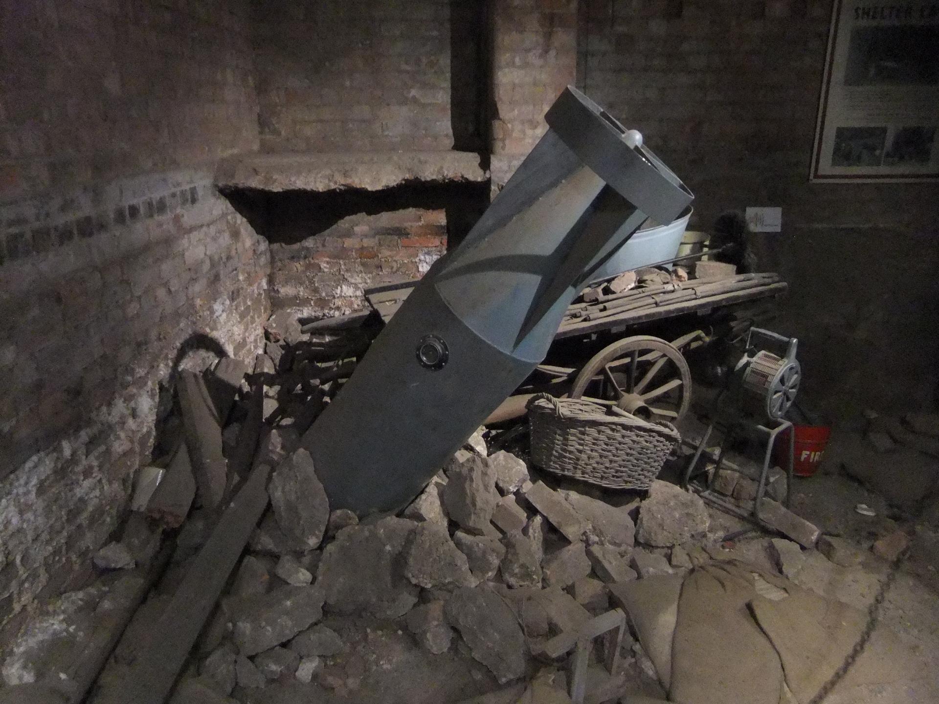 Some shelters still survive, including underneath nearby Pelham Street. A recent expedition found original signs on the walls and even the toilet still intact! We will go up Pelham Street shortly. As we do, try to imagine the scene underground and what it must have been like staying in there during terrifying bombing raids.