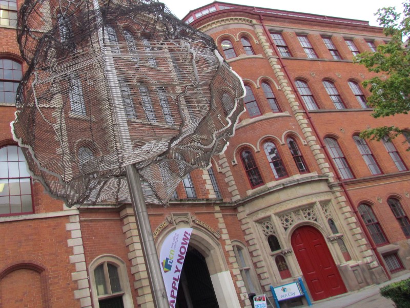 With Nottingham New College on your left, leave the square and continue onto St Mary’s Gate. Cross the road and take the next left, Broadway. Halfway along the right hand wall, look out for a small information board about the Lace Market. At the end of Broadway turn right and continue past a large church. Turn left and go along the right hand side of the road that slopes downhill. Near the end of the street go through a metal gate into Chardlace Walk.