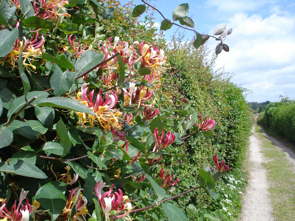 Under the hedges there are nettles, wild strawberries, comfrey, wild garlic and bedding plants planted by gardeners.