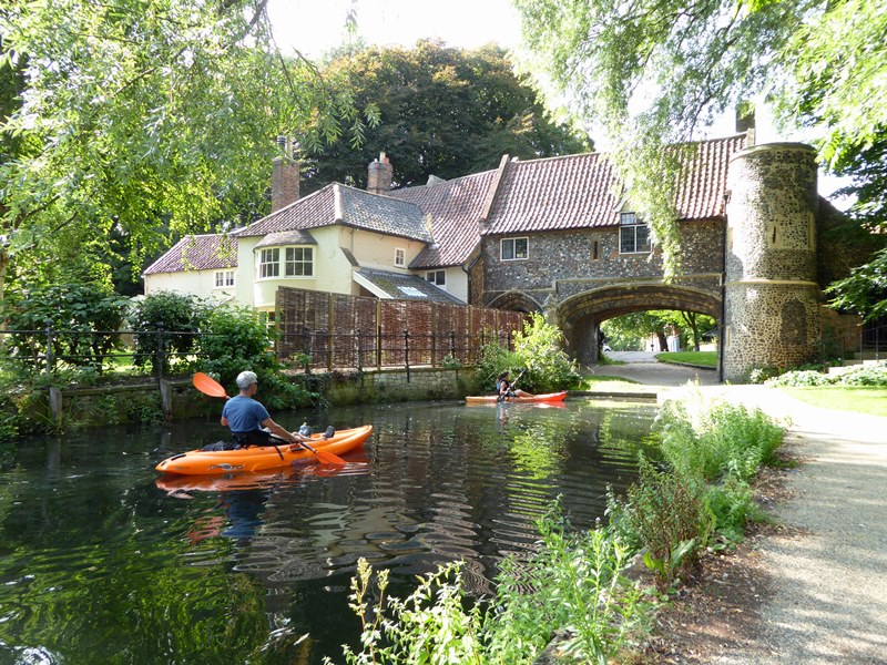 The stone arrived here by boat all the way from Caen in northern France. But how, when Norwich is 20 miles inland? To find out, go through the arch of Pull’s Ferry and look at the river.