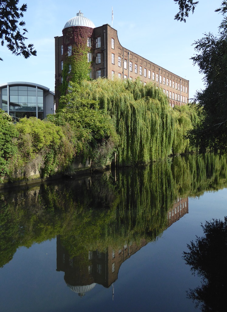 Besides connecting and protecting Norwich, the Wensum fuelled many types of work. Brewing, printing, and shoemaking all relied on a constant supply of water. The river’s major use though was making textiles. Across the river is a legacy of this industry, St James Mill.