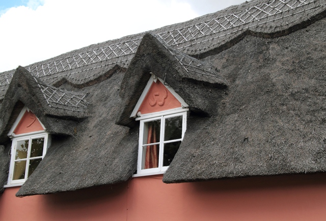 The White House and Willow Cottage both have traditional East Anglian thatch roofs. Until about 1800 AD there was little choice of roofing materials in many countryside areas apart from local vegetation. Thatch was light, available and cheap. A similar situation applies in many rural areas of developing countries today, where thatching with local plants is common.