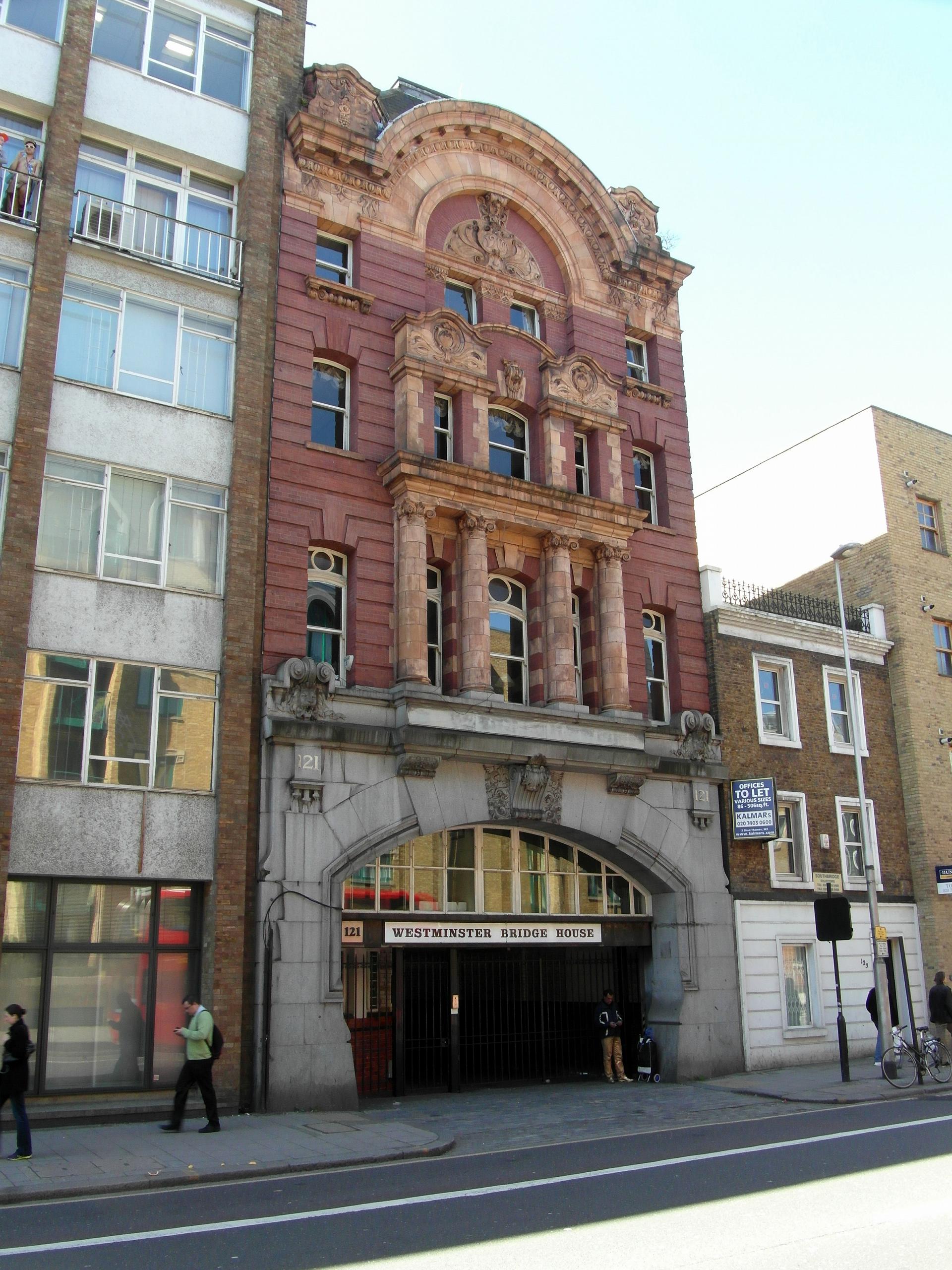 Walk down Westminster Bridge Road towards Lambeth North underground station, turn right and right again into Hercules Road. Turn first right into a small dead-end lane called Newnham Terrace. Walk to the very end of the lane and look up.