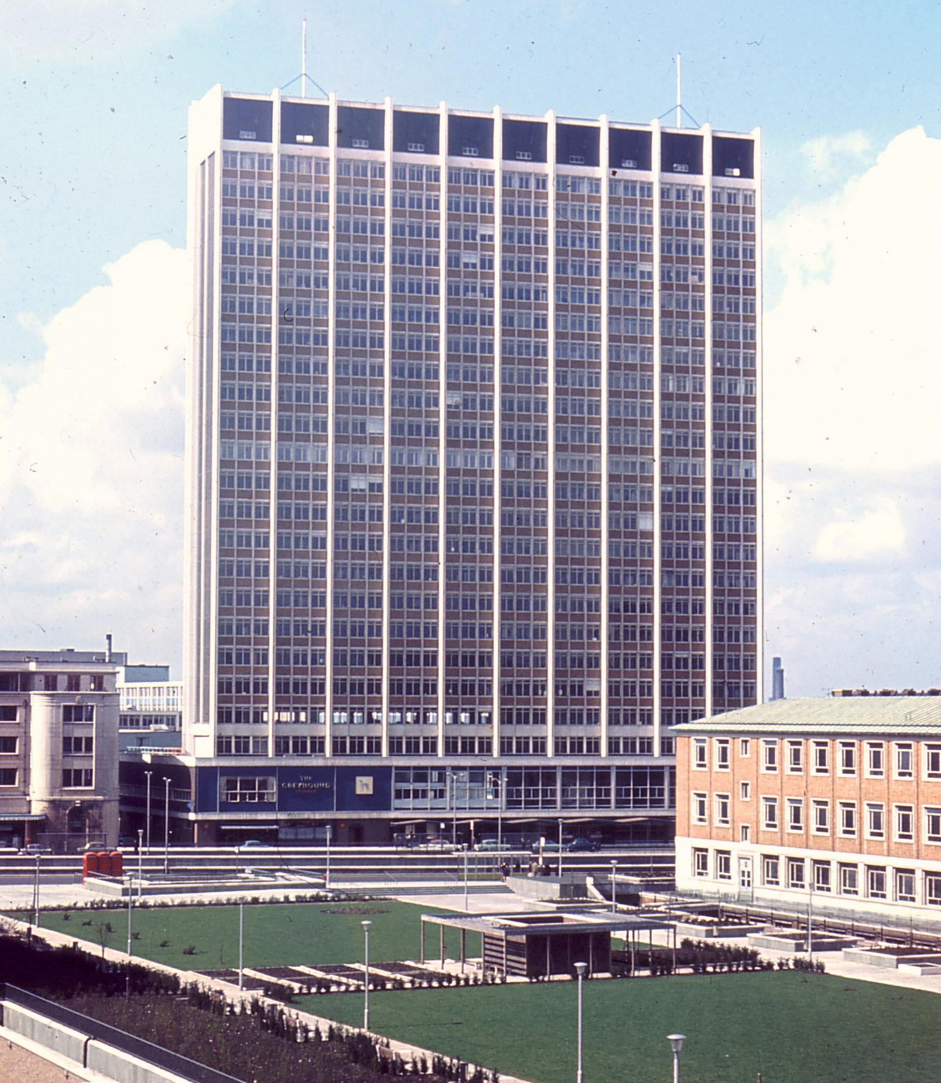 It wasn’t just music that blew people away. Through the tower’s ground floor is an arcade of shops. The shape and position of St George’s House pushed air downwards to the street and turned the arcade into a wind tunnel. Passers-by were often knocked over by sudden gusts.