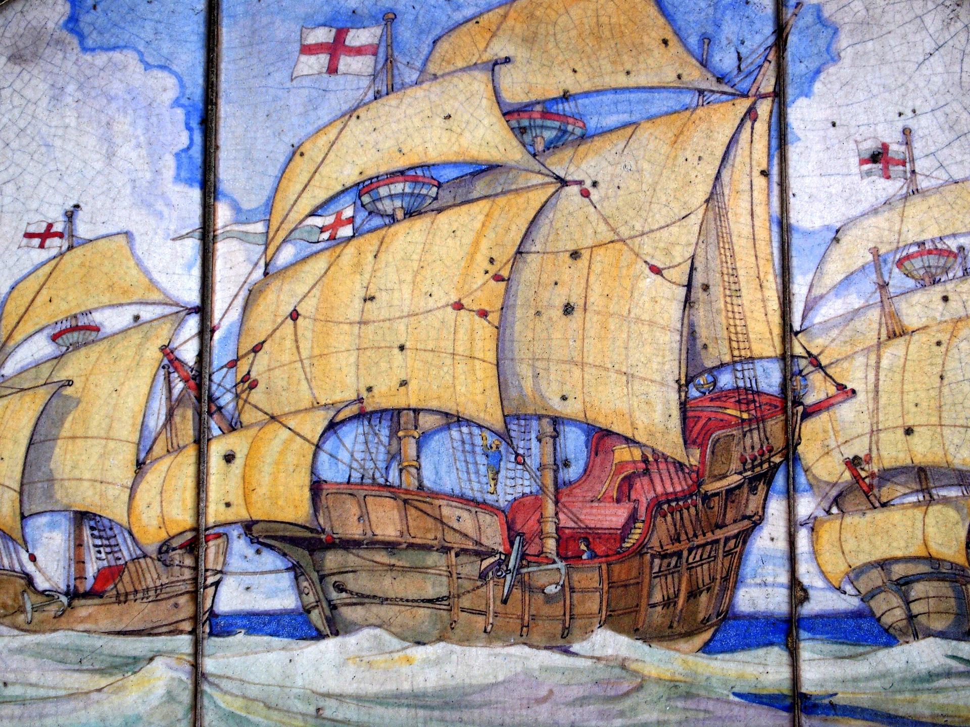 This plaque is a reminder of this seafaring era and the prominent role, London and in particular the East End played in this part of our history. In 1553 Sir Hugh Willoughby sailed the Bona Aventura and two other ships, to the seas north of Russia, looking for a north-east passage to Cathay. Sir Hugh died, along with the crew of two of his ships, off the coast of North Norway, but the third captain, Richard Chancellor, reached Archangel and opened a new trade route to Moscow.