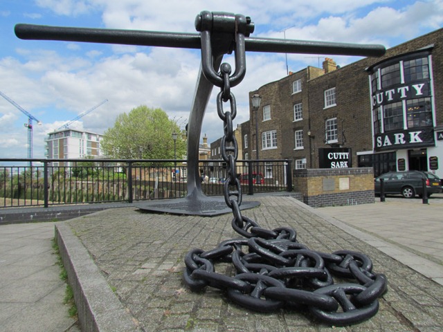 We are now in East Greenwich. This area has a proud industrial past quite distinct from the buildings of the World Heritage site. Here trade ships and maritime industries lined the riverbanks. This anchor sculpture by Wendy Taylor features an inscription that offers a succinct history of this spot.