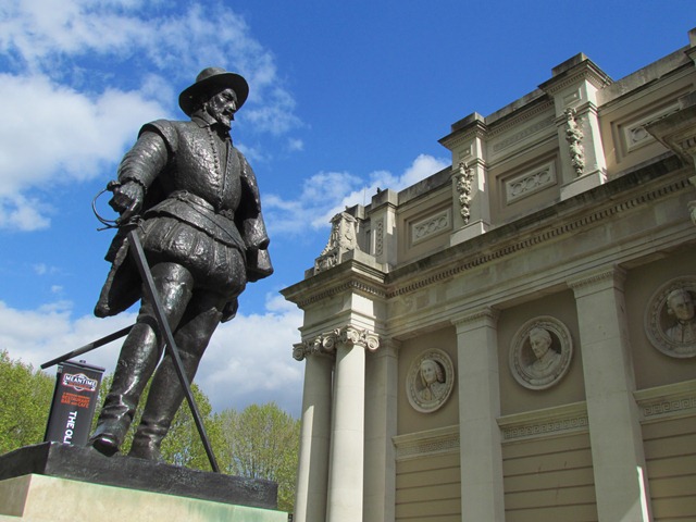 Remain outside the Discover Greenwich building and stop beside the statue of Sir Walter Raleigh.