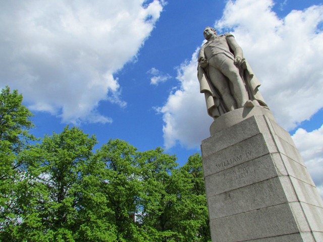 Continue up to the statue of of a man standing on a plinth (King William IV).