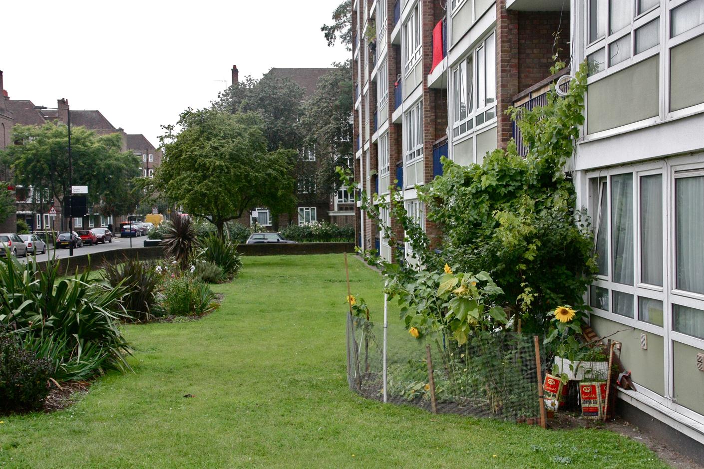 Alden House was built in the inter-war period. Look at the raised grassed area. That is the remains of the terraced houses that were previously on this street before this estate was built. Dig down and you get bricks and rubble. There’s no fertile soil here. The thin veneer isn’t good enough for growing food.