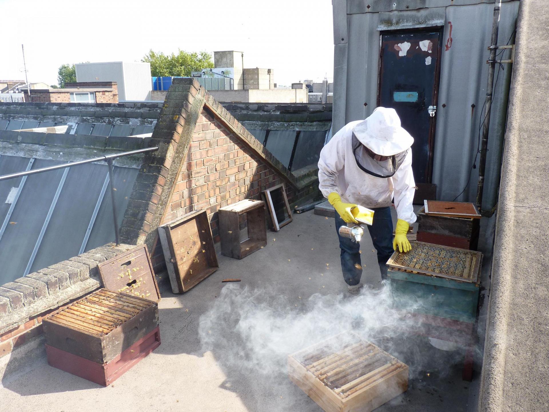 Every week during the spring and summer, I walk from my home nearby to check the bees on the roof of the Space Gallery.