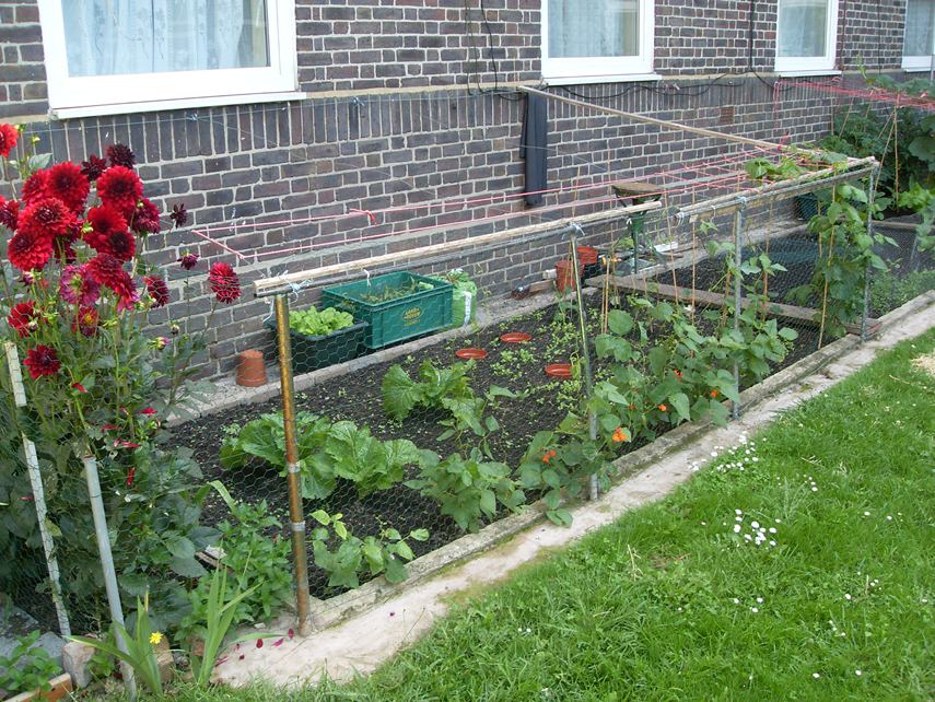 A few pioneer gardeners are growing herbs, cabbages, basil, sweetcorn and tomatoes. This is council property but there seems to be no objection to residents using this communal space.