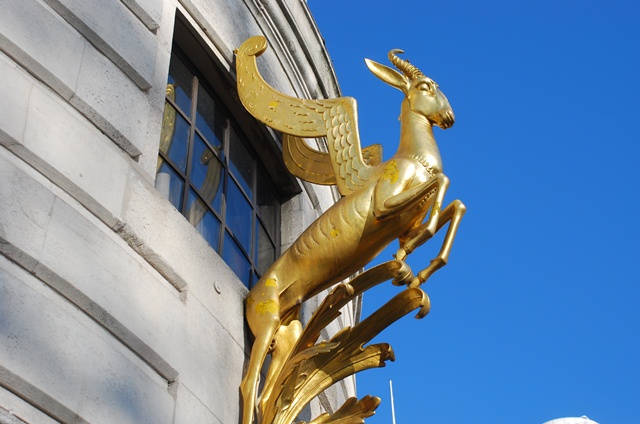 Notice that India House is rather different in style to Australia House and Bush House that we have already seen. Somehow it seems less confident, less heroic. It was completed in 1930 and reflects the changing political relationship between Britain and India in the interwar period. In 1920 a High Commissioner of India had been appointed as the first step towards Indian selfgovernment.