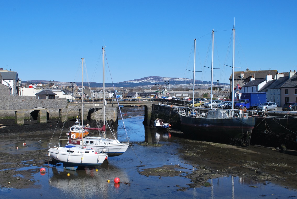 Follow Castle Street round towards the castle keeping the harbour on your left. Pass the Castle Arms hotel and stop on the corner opposite the castle gateway looking at the police station.