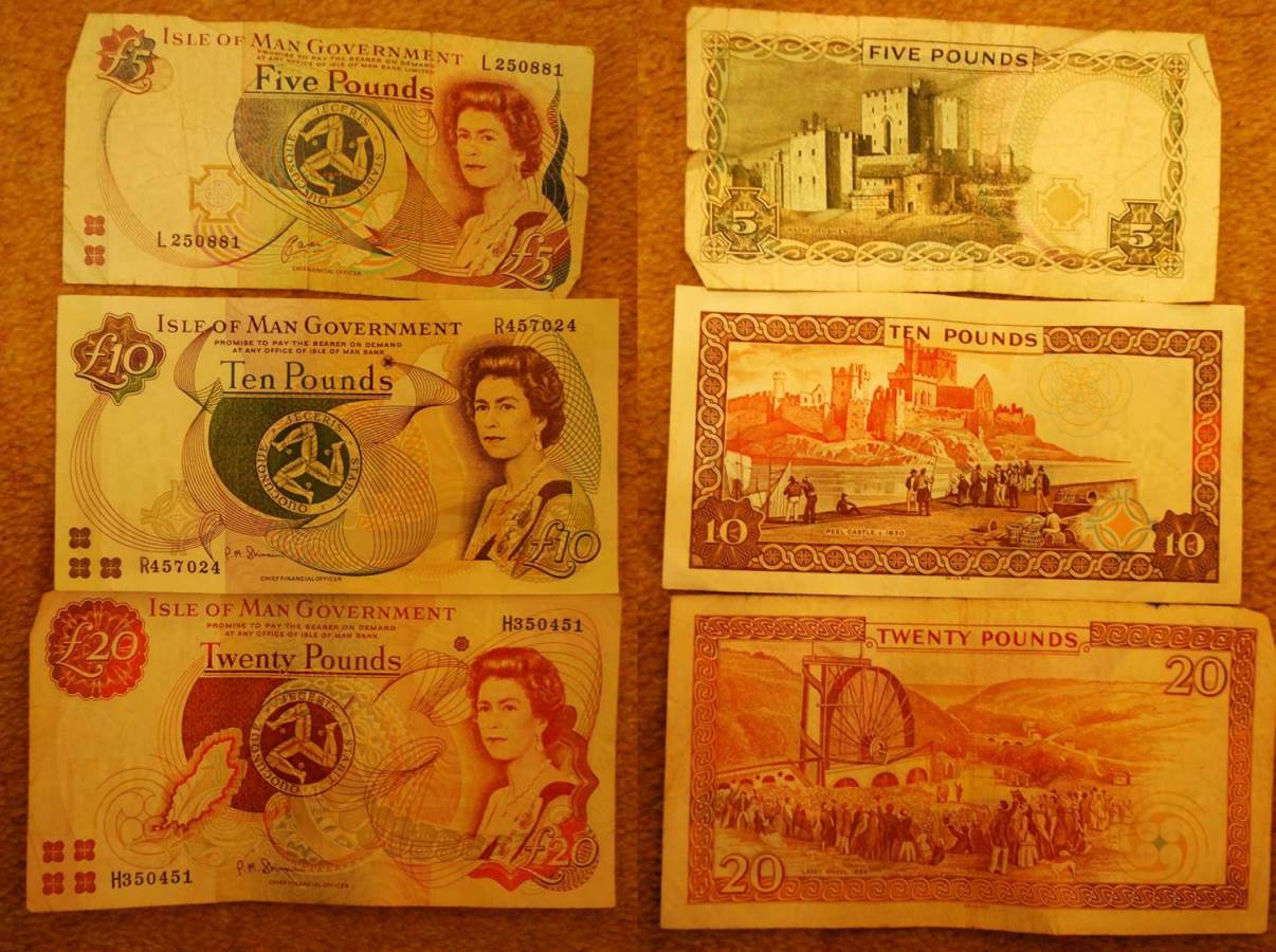 Notes from the Bank of England, Scottish and Northern Ireland banks are generally accepted here but Manx notes and coins are not generally accepted in the UK so try to spend all your money before you leave!