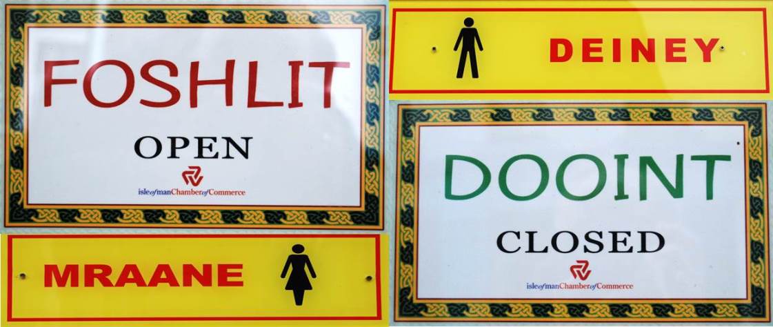 Look on the houses that face up The Crofts and you will see two street signs. The older one on the right is in English but the newer one on the left is in Manx and English. The use of Manx is becoming more common.