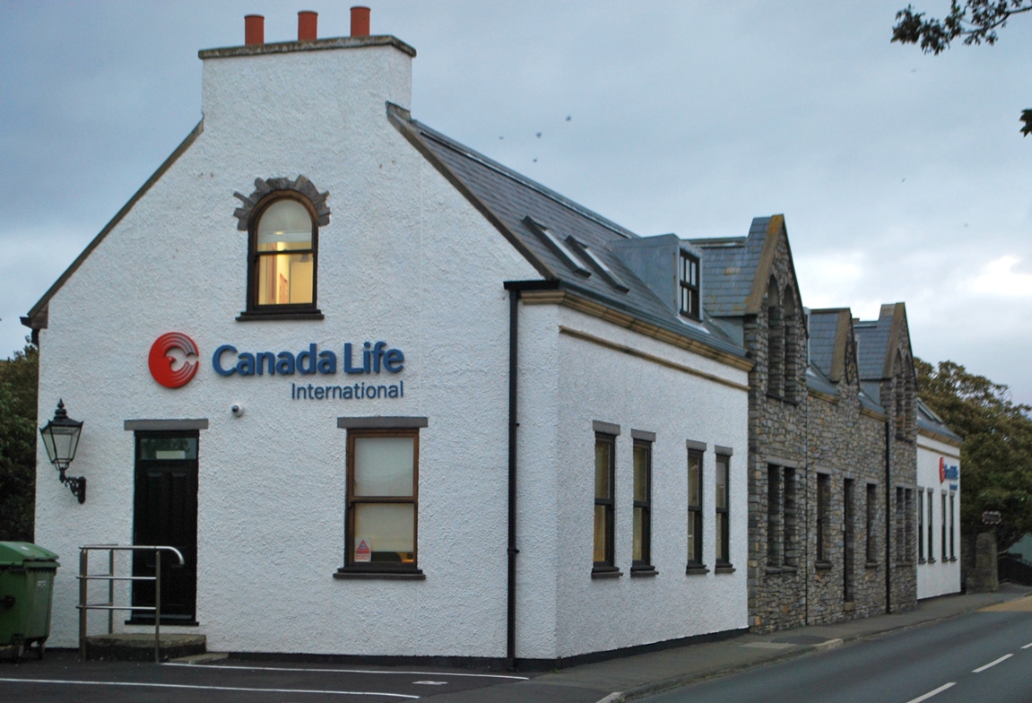 The financial services sector became an important part of the Manx economy after the creation of a low tax economy in the 1960s. This is one of two offices in Castletown of Canada Life International, an insurance company. Elsewhere in the town is a purpose-built office development called Royal Court, home to Friends Provident, an investment company which employs about 250 people.