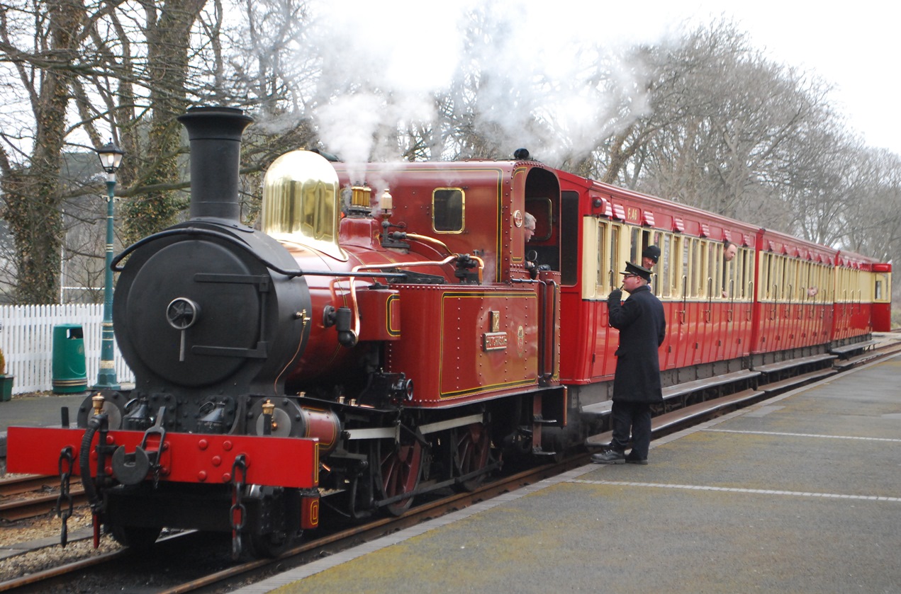 Castletown Station is on the Isle of Man Steam Railway, a narrow gauge railway opened in 1874 connecting Douglas on the east coast to Port Erin in the southwest. It is a mixture of a commercial railway operation and a preserved historic railway run by both paid employees and volunteers.