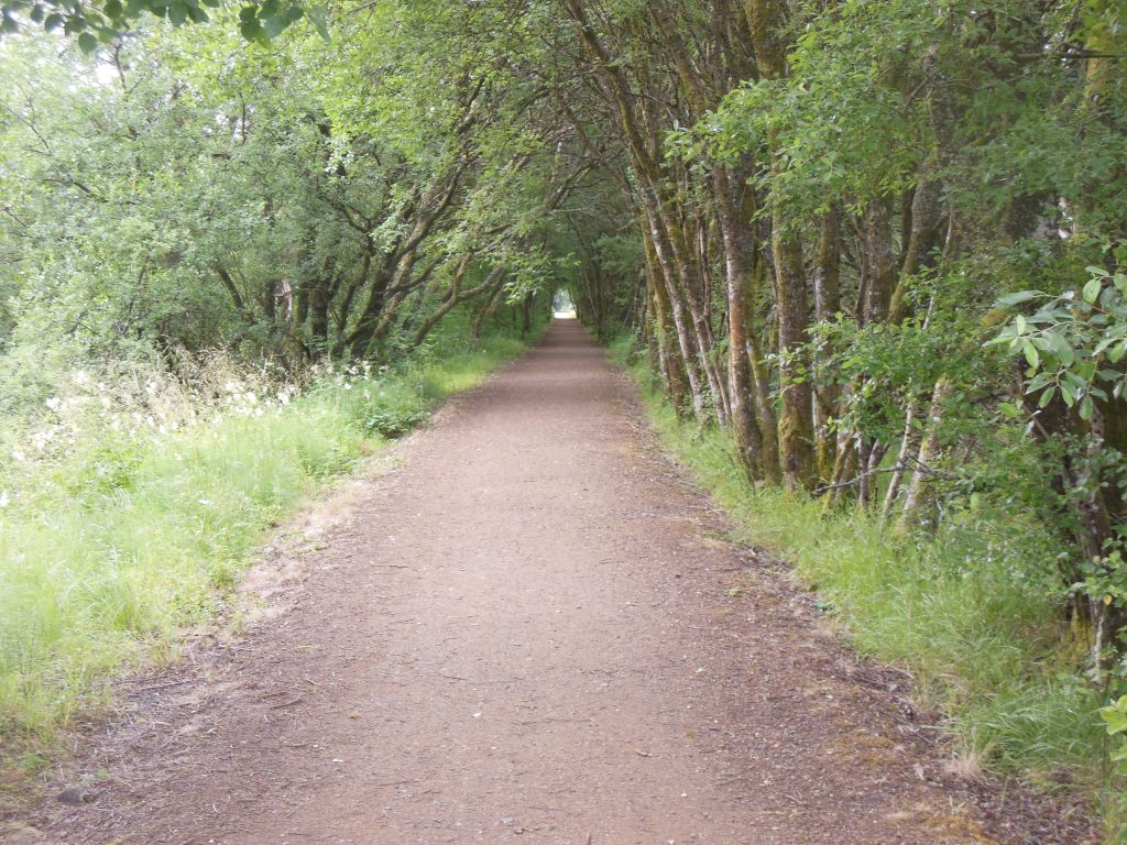 The path is so straight because it follows the line of a former railway. Since the railway has gone the trees on either side of the path have flourished and grown into the space above, creating this dramatic green tunnel of foliage.