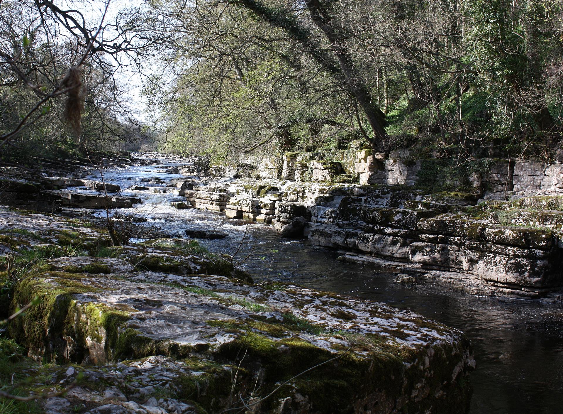 Directly across the river, a smaller area of quarrying occurred at Watersmeet Quarry, which was also owned by the Abbot of Egglestone. The marble extracted here is differentiated from the other sites by dark-coloured shell fragments and is known as Greta or Watersmeet marble.