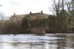 Continue through the gateway in the dry-stone wall and walk to the left of the mill building. Beyond the mill building, continue diagonally right along the path, which stays away from the river bank until the sewage works, then goes through a gate between the works’ wall and the riverbank. On emerging into a field, find a gap in the tree line on your right, close to the river.