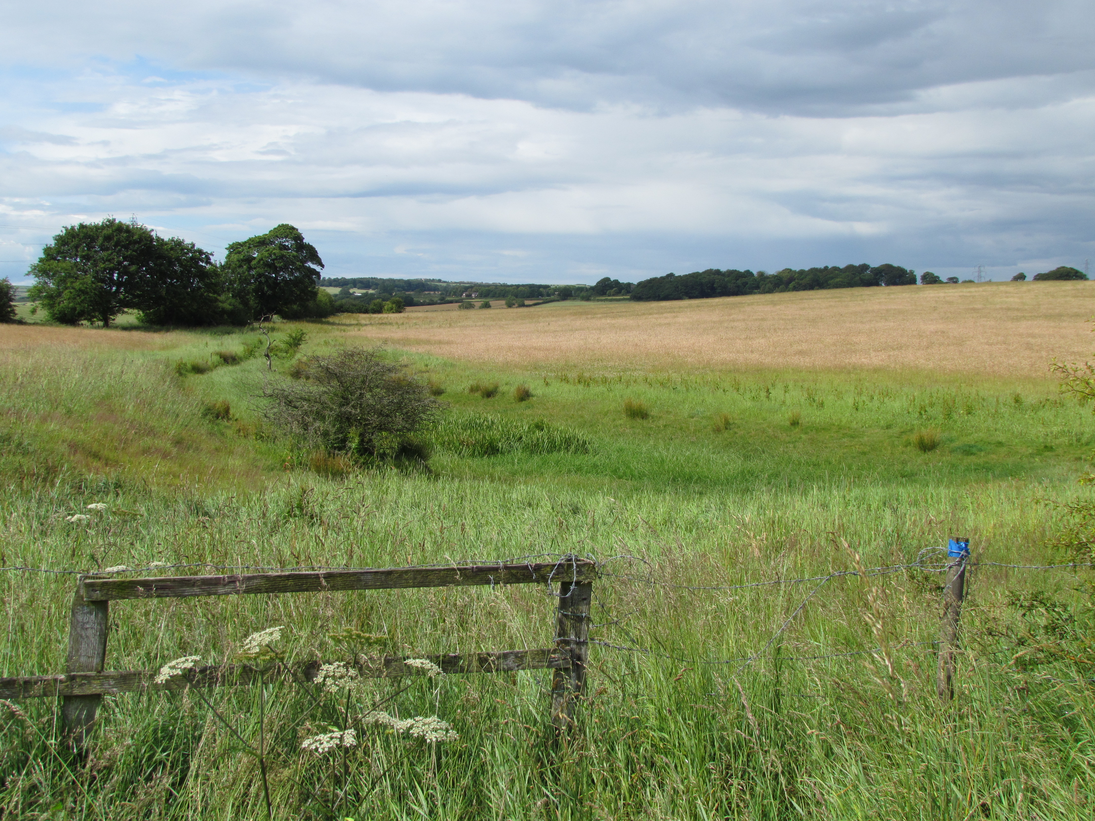 Turn back to face Bearpark Bog: to the left of the bog the land rises – this is part of the huge ‘dam’ of Ice Age deposits – sand and gravel and rocks dumped by the melting ice sheets – that blocked the river’s path. We came up the other side of this dam at the top of Flass Vale, after we came up North Road.
