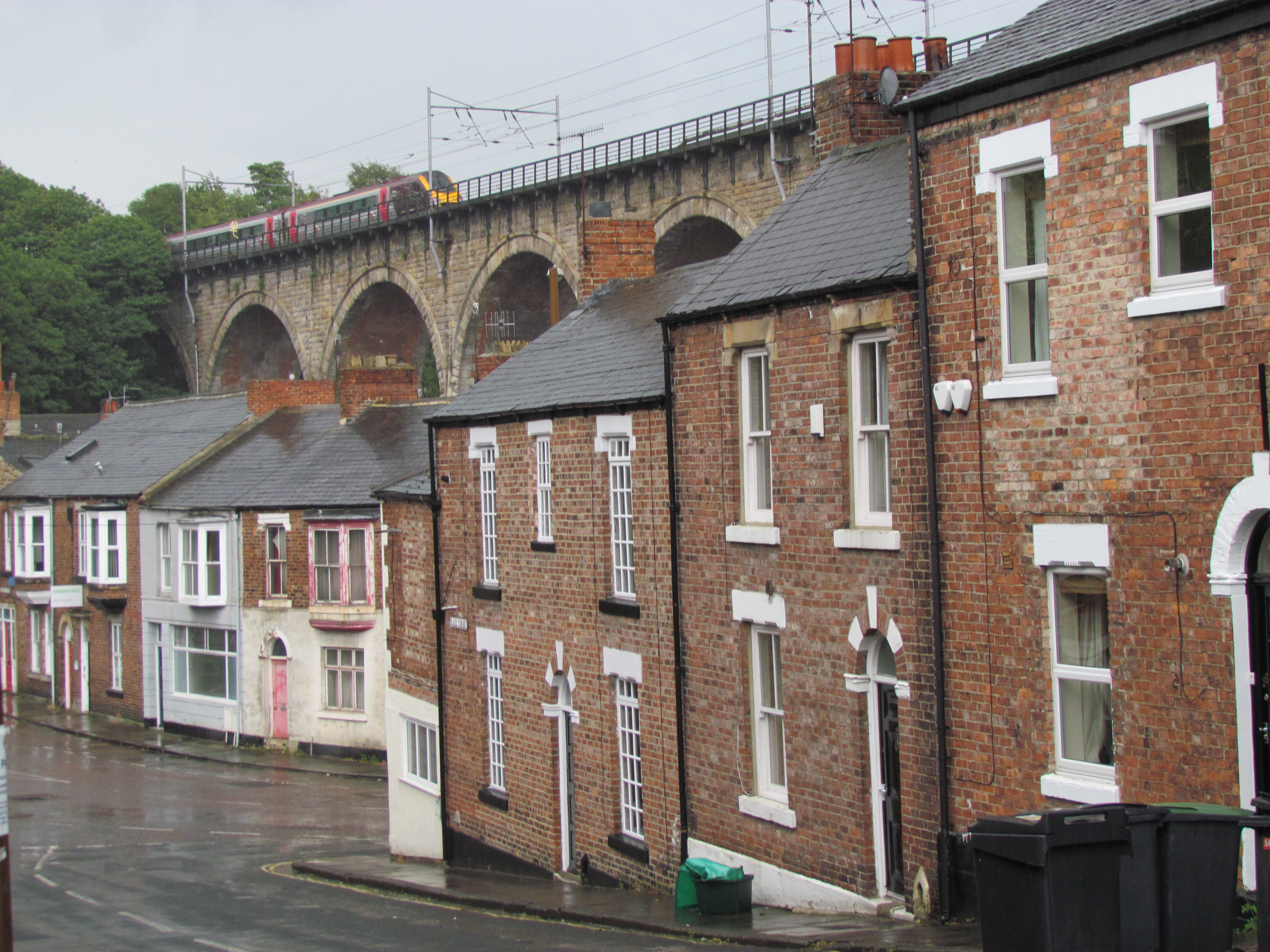 But as you walk up North Road look to the left and right. You will be able to see slopes rising on both sides that show how we are in the bottom of a valley. In particular, look out for steep, cobbled Neville Street on the left.
