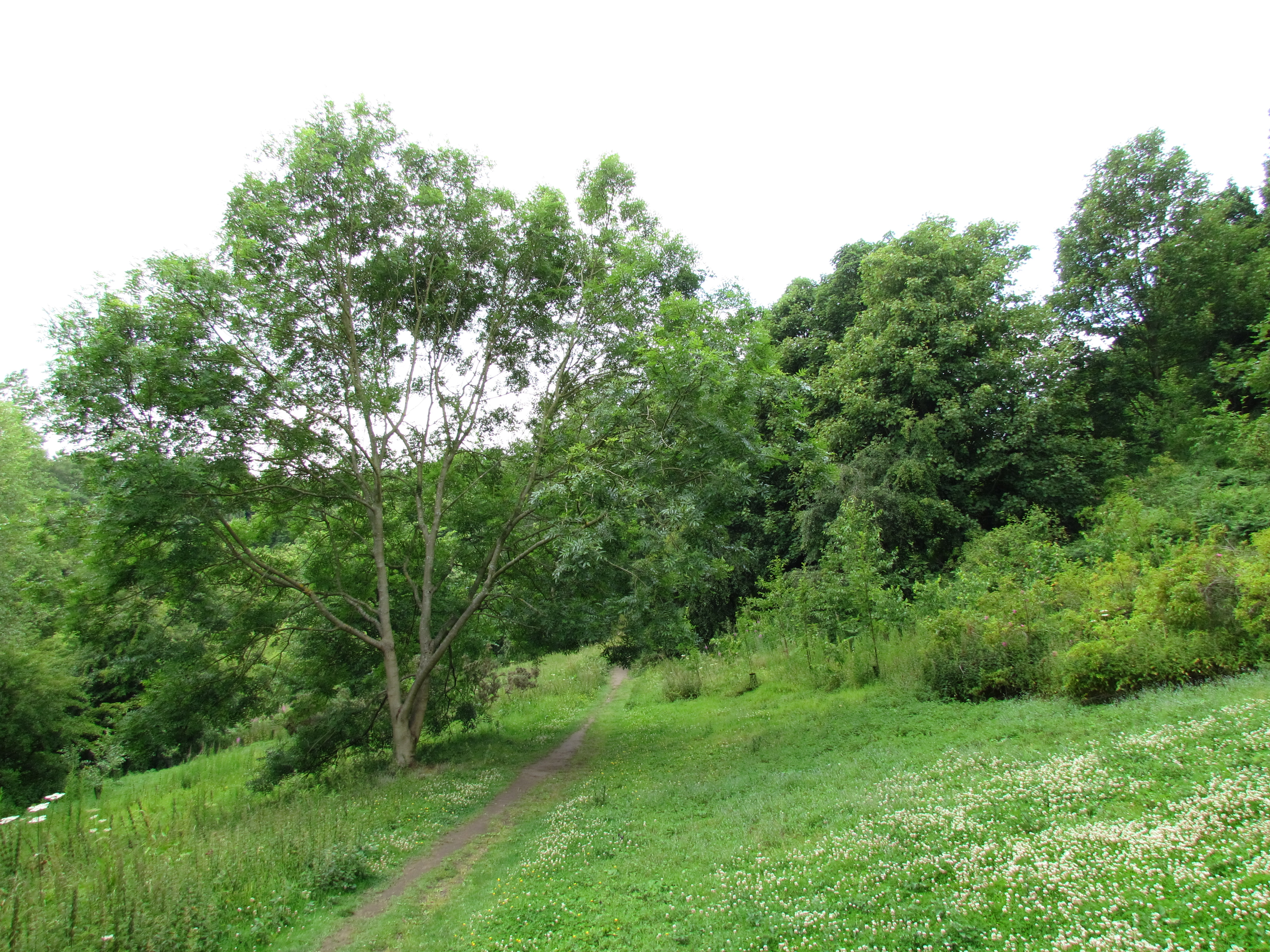 Follow this path until it leaves the shade of the trees. Stop when you reach the display board on the left of the path which tells some of the history and ecology of Flass Vale.