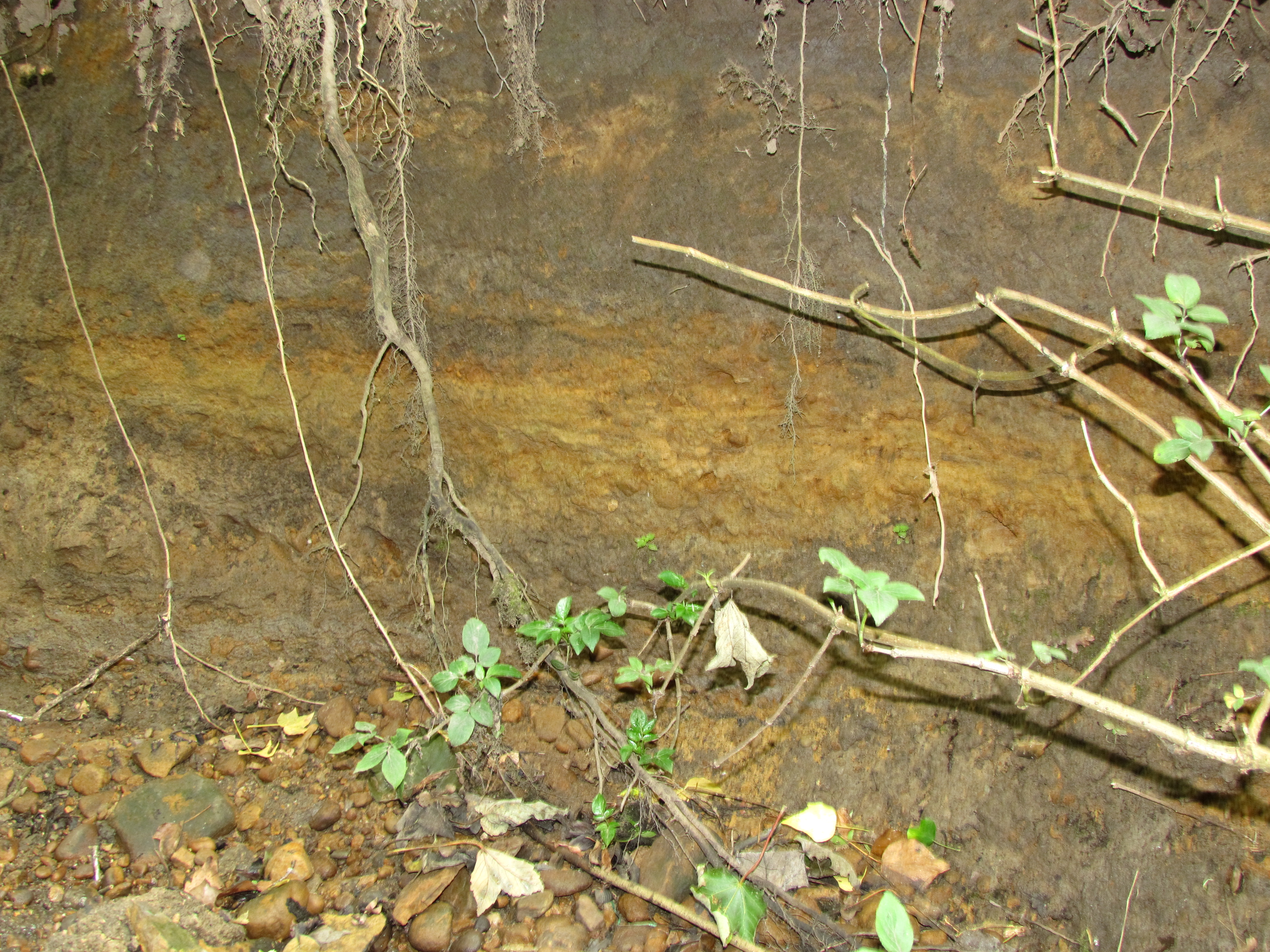 Here is a good view of the sand that makes up so much of this landscape and, in the stream bed, there’s lots of gravel because the stream has carried away the lighter sand. We can see that the sand lies on top of the clay, so it must be more recent.