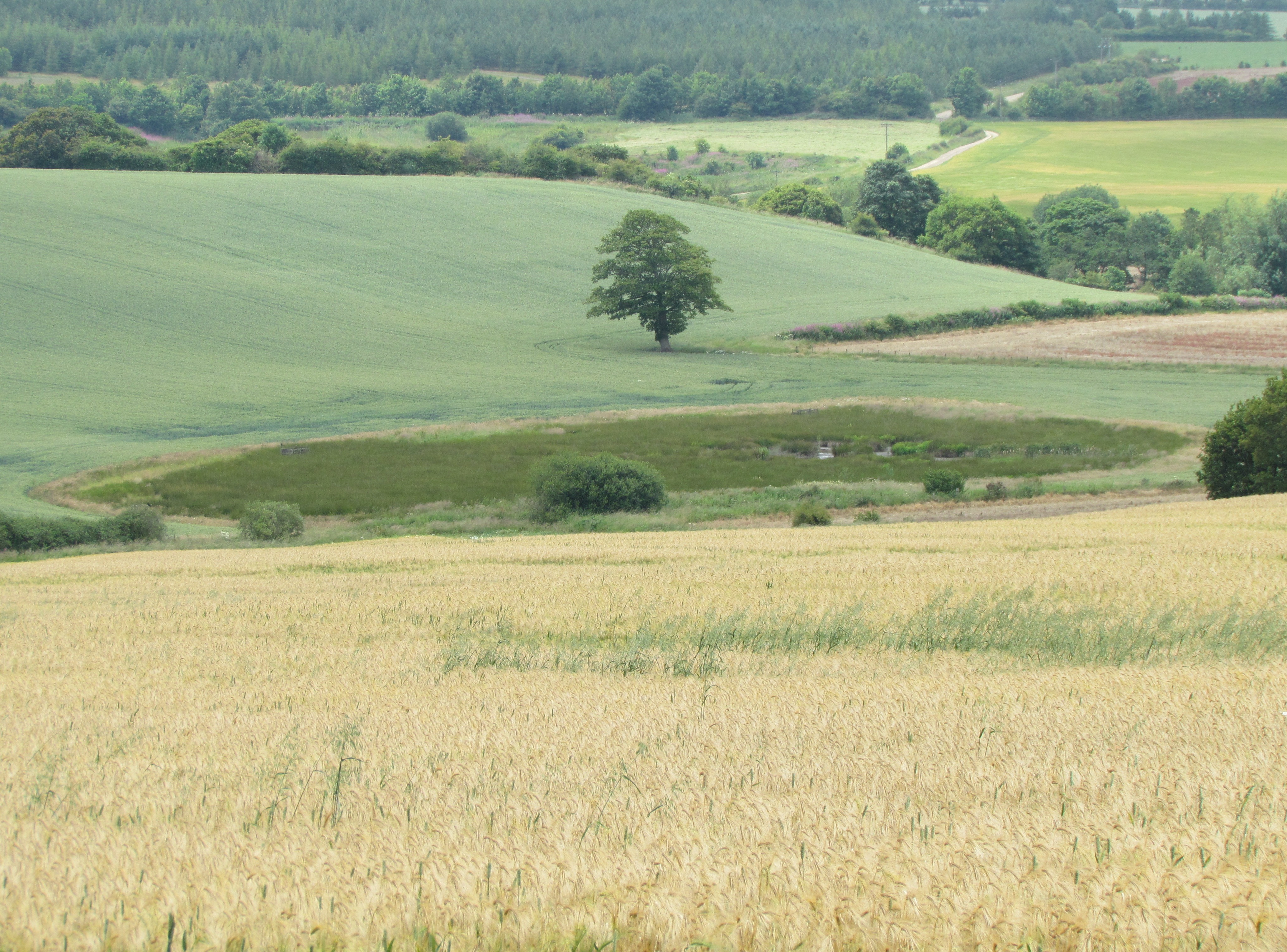 Look back along the track we’ve just come on and then look to the right. Can you see that the vegetation is quite different in colour and shape and height from the crops that surround it and that the land is quite low and sunken down? There’s a pool there but it has only existed for about 30 years.