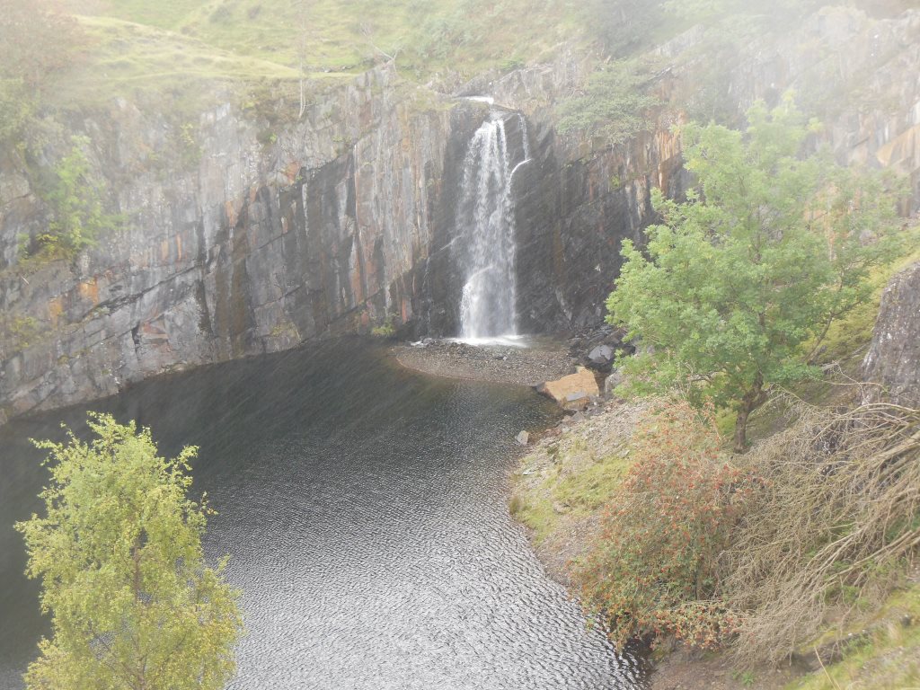 When miners were quarrying for slate they had to be careful not to dig too close to the many streams which flowed off the Old Man. One of the largest mountainside streams flowed here. Quarrying began on both sides of the stream with the Eddy Scale Quarry worked on the far side of the river and Banishead Quarry on this side. As more slate was dug out the two quarries grew larger and crept closer to each other and to the river.