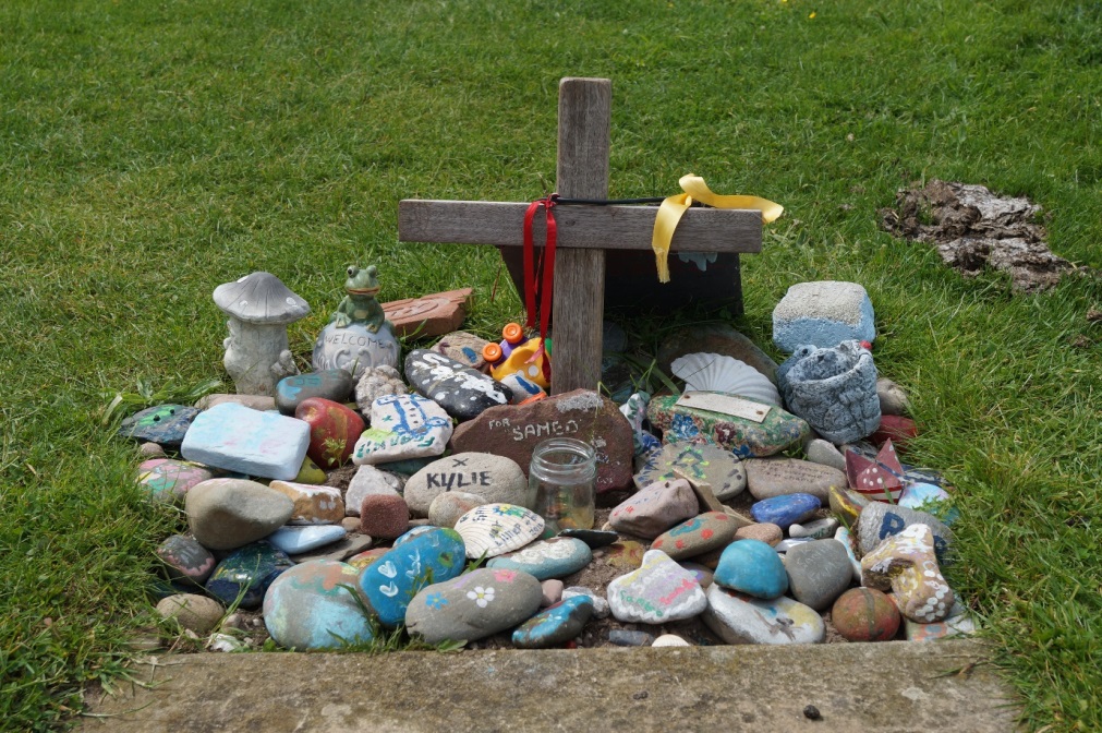 The grave in the small enclosure commemorates a young African slave boy who was put ashore here in 1736 and abandoned. It has a life of its own; depending upon the season, there might be flowers, Christmas ephemera, tin boats, toy animals and messages painted on stones all clustered underneath a low wooden cross. After 4 days, and with no apparent offers of help, the boy died a very lonely death of some unreported disease. Flat in the grass is a gravestone inscribed with a poem and dedication, installed by the Reverend Watson some 60 years after the young boy’s death.