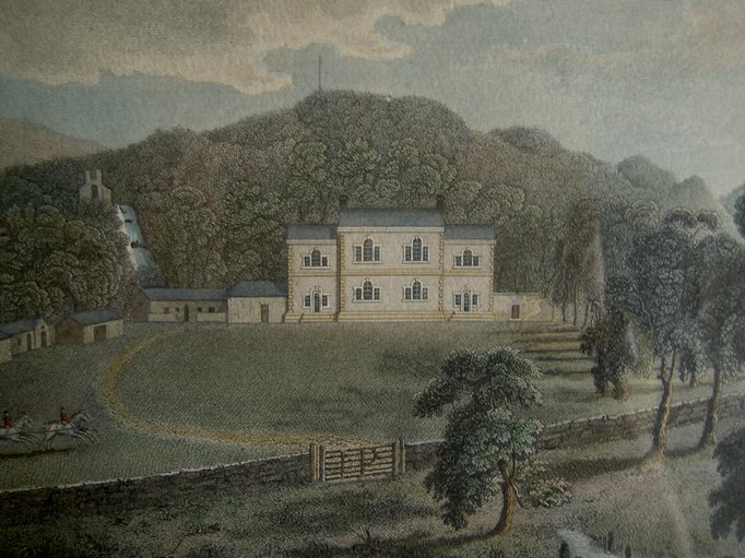 Depending on the time of year you might be able to see Barrow Cascade, visible to the left of the house in the engraving. Even though the summer foliage usually conceals this view you can probably still hear the falls gushing through the trees.