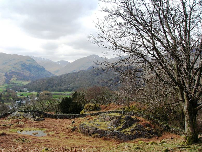 In each glacial period the Borrowdale Valley was occupied by ice and the sheer rock face beneath Surprise View is the result of glacial erosion and subsequent rock falls.