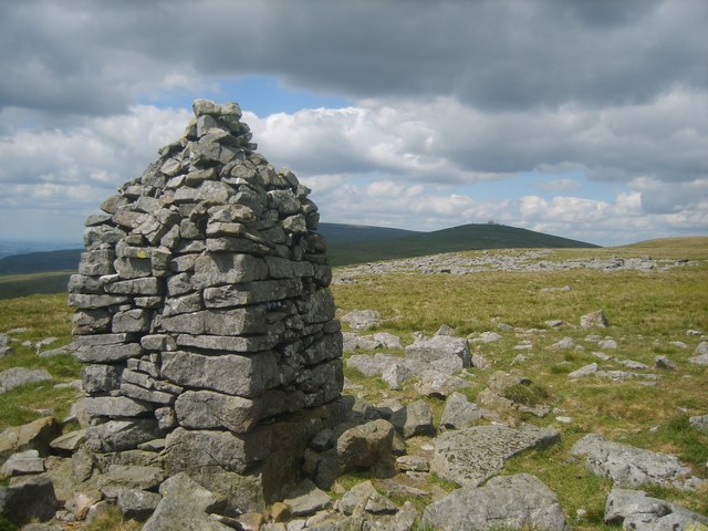Continue following the Pennine Way upwards for another kilometre. Stop when you reach Knock Old Man (a large cairn with a square base).