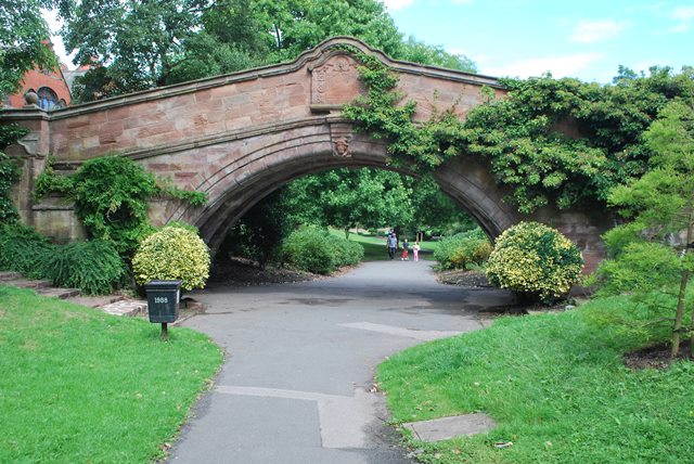 Retrace your steps and cross Greendale Road at the traffic island outside the station. At the tea room turn right and use the second traffic island. Keep the park on your left and follow the road up to a stone footbridge. Stop halfway over the bridge.