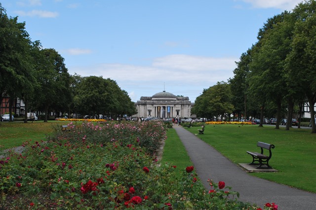 This is the Lady Lever Art Gallery which we will see in more detail shortly. For now notice that the street layout is completely different. Instead of informal groups of cottages in the style of an English village, there is a different form of town planning relying on grand views and vistas.
