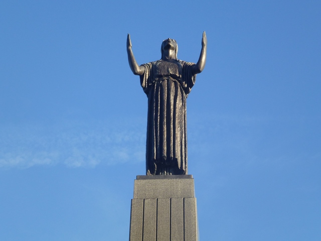 Continue through the gardens towards the gallery. Pass the fountain and car park then bear left towards the island with a column and group of statues. Carefully cross the road to the island and face the statues and gallery.