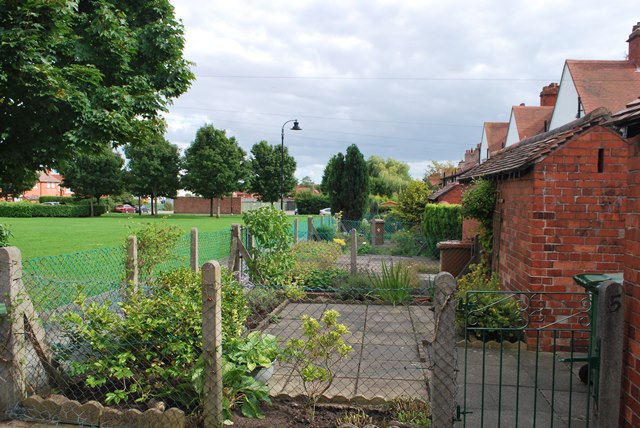 Turn left into Boundary Road and take the first left into Circular Drive. Almost immediately turn left into a small road that gives access to the rear of the houses.