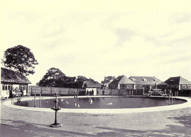 The pool was a well-designed and decorative place. Even the dressing huts were thatched. It remained in use until 1971 and the buildings were demolished in 1975. To this day, aerial photos show the circular outline of the pool in the tarmac of the garden centre car park.
